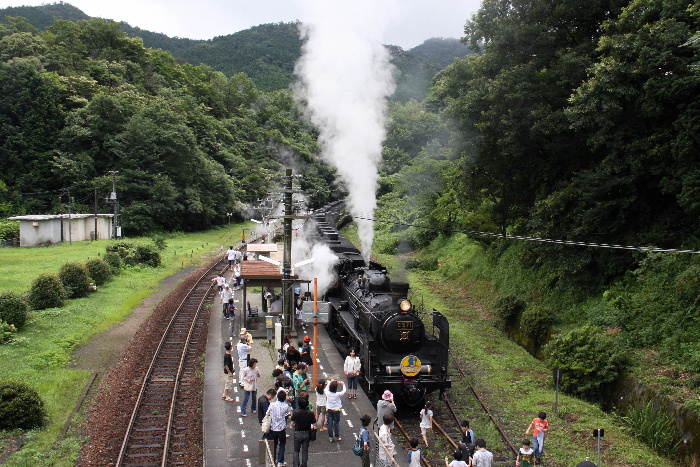 牽引蒸気機関車はC57形のトップナンバー1号機である。